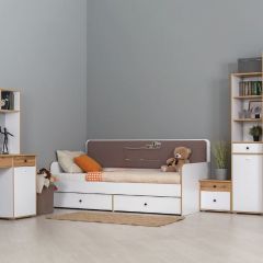 • Вуди Кровать 11.02 - 2092*944*h965 мм, сп.м. 900*2000 мм, рек-мая h-матраса 100-200 мм, основание ЛДСП, Мягкое изголовье с карманами.