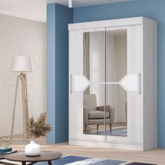 Шкаф-купе "Лига №1" 1,5 м имеет широкую секцию, оборудованную штангой для вешалок, несколько полок для одежды и белья, два выдвижных ящика для мелких предметов. Фасады шкафа декорированы зеркальными накладками .